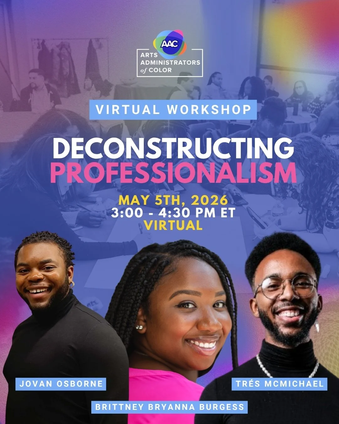 Deconstructing Professionalism is an engaging and reflective session that challenges traditional ideas of professionalism, concepts historically rooted in racism and misogyny. Together, we will unpack what professionalism truly means to each of us through open conversation, personal reflection, and creative expression. Using real-world examples and data from the U.S. Equal Employment Opportunity Commission, we will explore how outdated standards regarding appearance and behavior continue to shape our professional lives today.